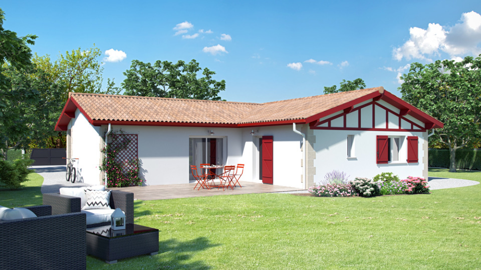 Sur un terrain constructible de 410 m² dans une rue calme côté Bassin à Arès, ce projet de construction propose une élégante maison landaise de plain-pied de 100 m² habitables + garage intégré, dans le style traditionnel basque/landais revisité avec modernité.